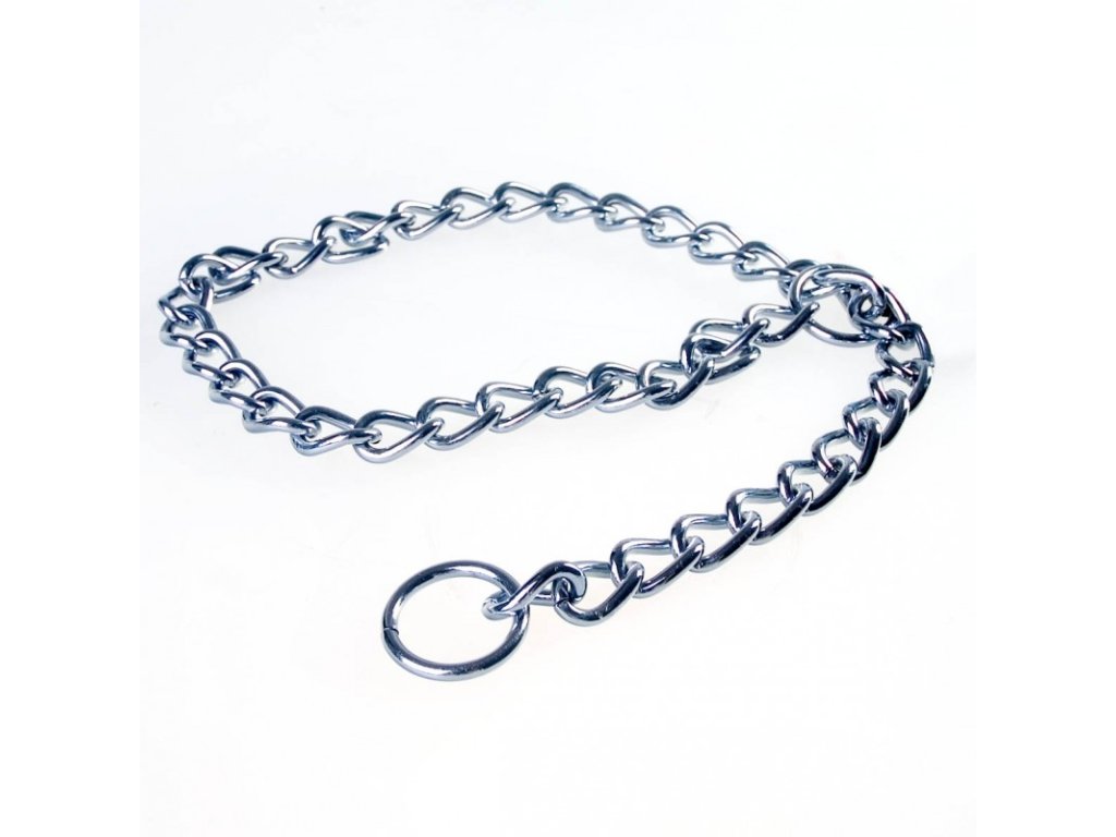 Jednoduchy řetízkový obojek pro psa. Stahovací obojek má pevná svařovaná oka s povrchovou úpravou chrom - snese i vysoké zatížení.